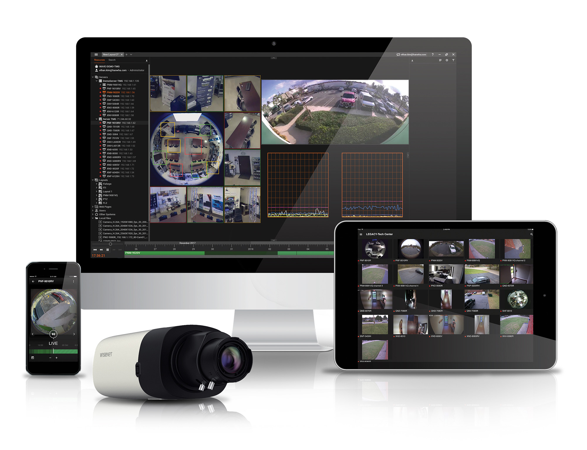 Wisenet WAVE is the flexible, intuitive, and powerful video management system from Hanwha Vision, purpose-built to simplify the management of even the most demanding video surveillance environments. Designed with an open architecture and user-friendly interface, WAVE allows businesses to easily view, search, and manage live and recorded video from any Wisenet camera — and hundreds of third-party devices.
